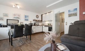 Auf ca. 54 qm Wohnfläche finden in dieser Grömitzer 3-Zimmer-Ferienwohnung bis zu 2 Erwachsene und 2 Kinder Erholung. Ein Reisebettchen sowie ein WLAN-Zugang sind für Sie inklusive.