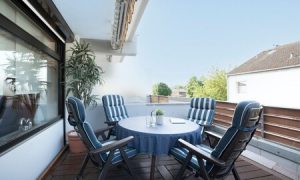 Die Wohnung ist sehr funktional; großer Wohn- und Essbereich und eine große Terrasse. Bad und Schlafzimmer klein, aber fein.