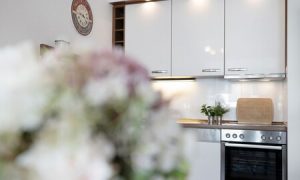 Das Herzstück der Wohnung bildet der offen und freundlich gestaltete Wohnraum mit Essecke, offener Küche und Zugang zum Süd-West-Balkon. In der Küche finden Sie mit Toaster, Kaffeemaschine und Eierkocher alle wichtigen Basics, um gestärkt in den Tag zu starten.