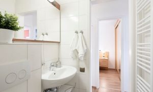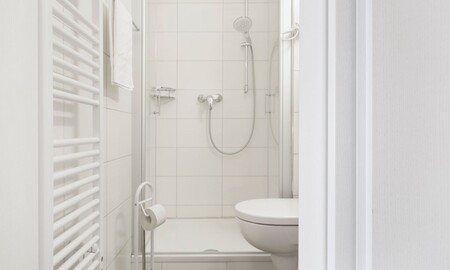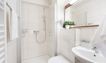 Das renovierte Bad mit Dusche, Fön und beheizbaren Handtuchhalter ist klein aber fein.
