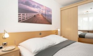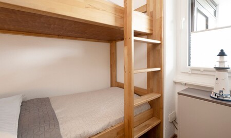 Die nächtliche Erholung bieten Ihnen im ersten Schlafzimmer ein Doppelbett (2 x 80×200 cm) und im zweiten Schlafzimmer ein Etagenbett (je 80×190 cm). Zur Verdunkelung gibt es Außenrollläden an beiden Schlafzimmern.